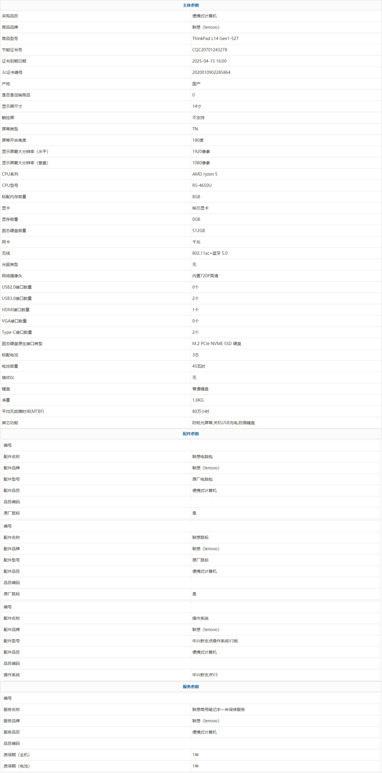 - 商品名稱:聯(lián)想(lenovo) ThinkPad L14 Gen1-527 AMD ryzen 5 R5-4650U 8GB 512GB 中興新支點(diǎn)V3 14寸 1年
