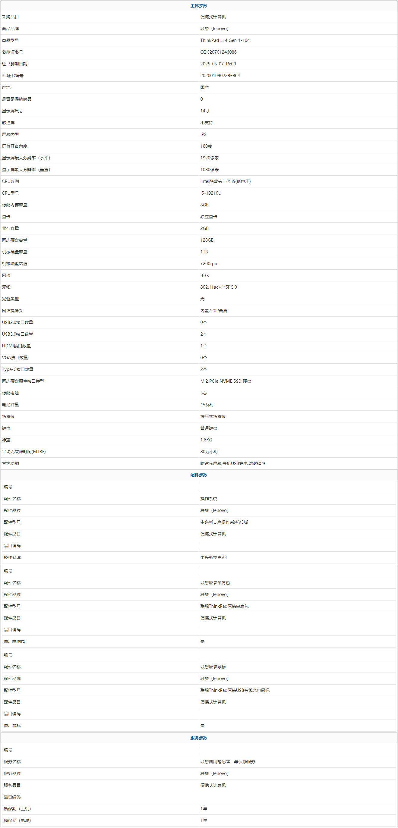 - 商品名稱:聯(lián)想(lenovo) ThinkPad L14 Gen 1-104 Intel酷睿第十代 i5(低電壓) I5-10210U 8GB 1TB 128GB 中興新支點(diǎn)V3 14寸 1年