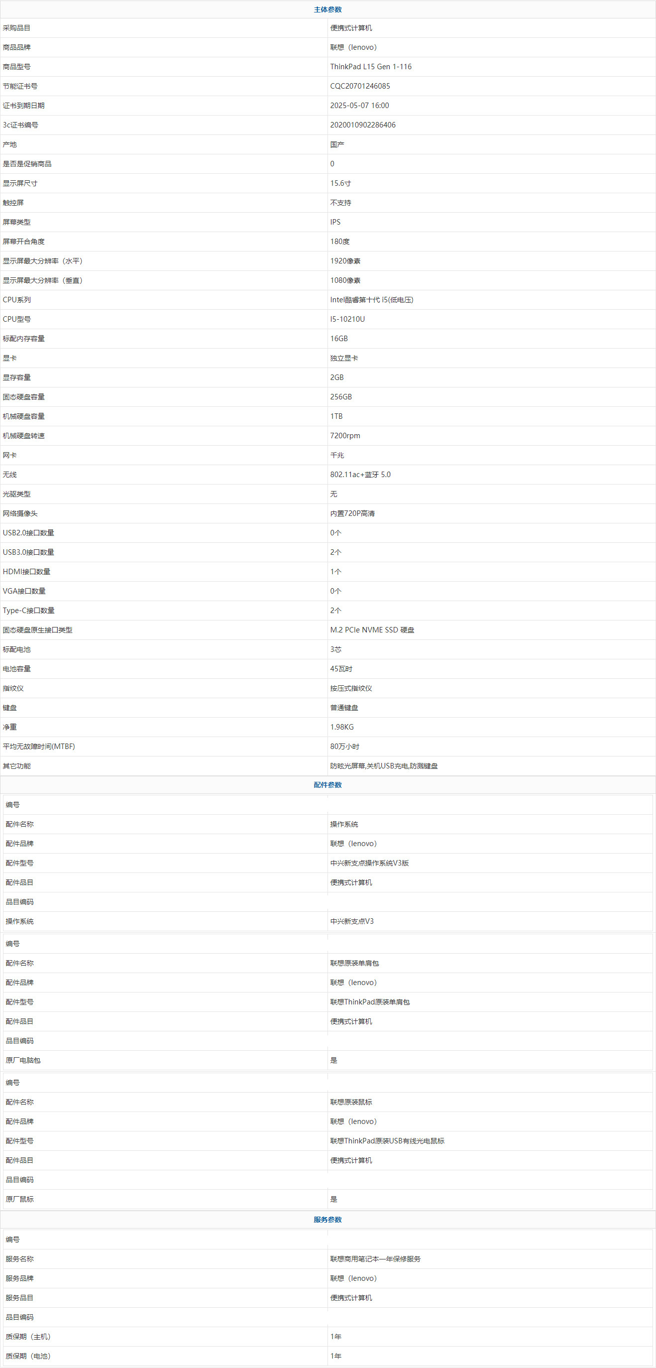 - 商品名稱(chēng):聯(lián)想(lenovo) ThinkPad L15 Gen 1-116 Intel酷睿第十代 i5(低電壓) I5-10210U 16GB 1TB 256GB 中興新支點(diǎn)V3 15.6寸 1年