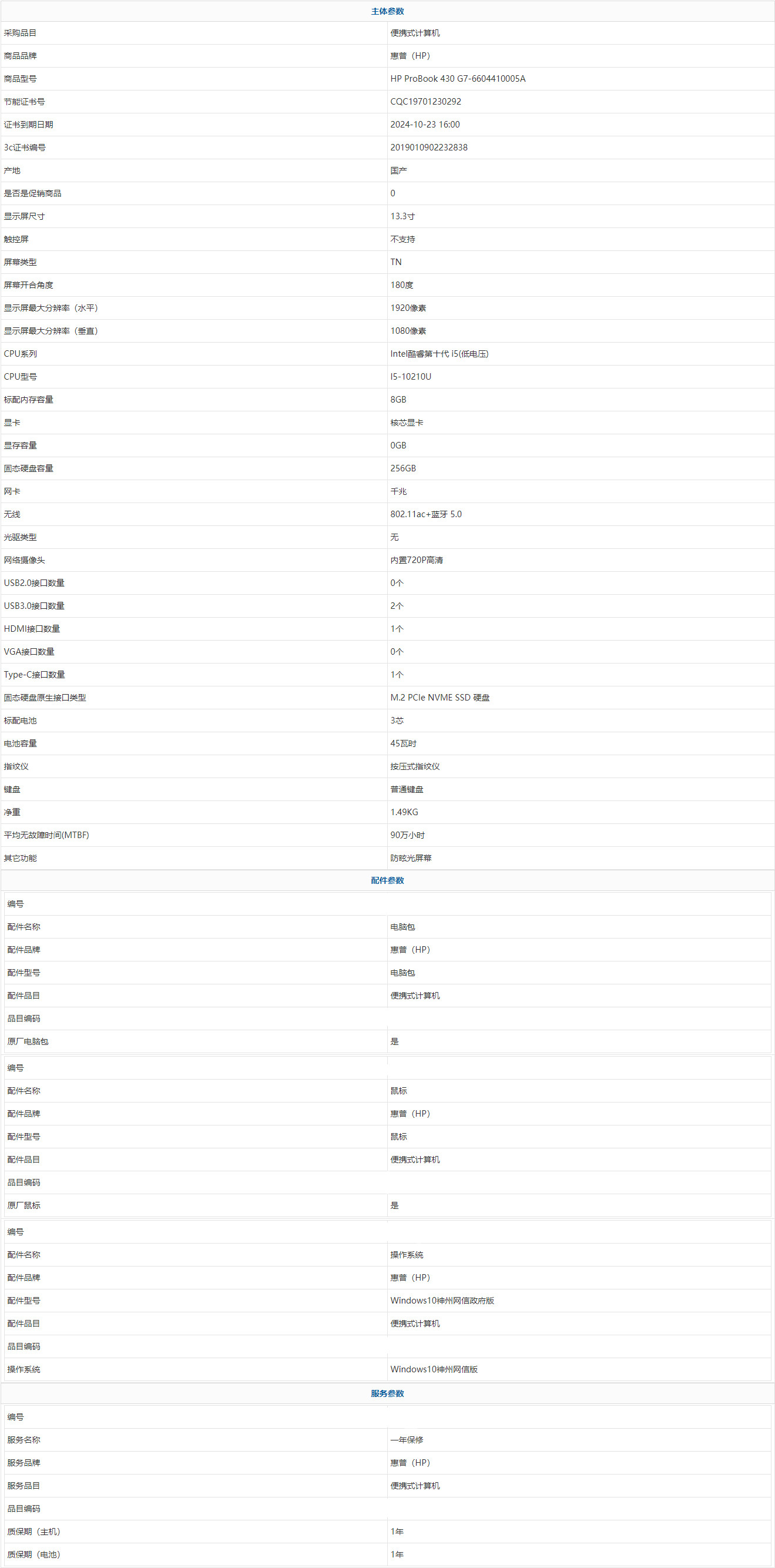 • 商品名稱:惠普(HP) HP ProBook 430 G7-6604410005A Intel酷睿第十代 i5(低電壓) I5-10210U 8GB 256GB Windows10神州網(wǎng)信版 13.3寸 1年