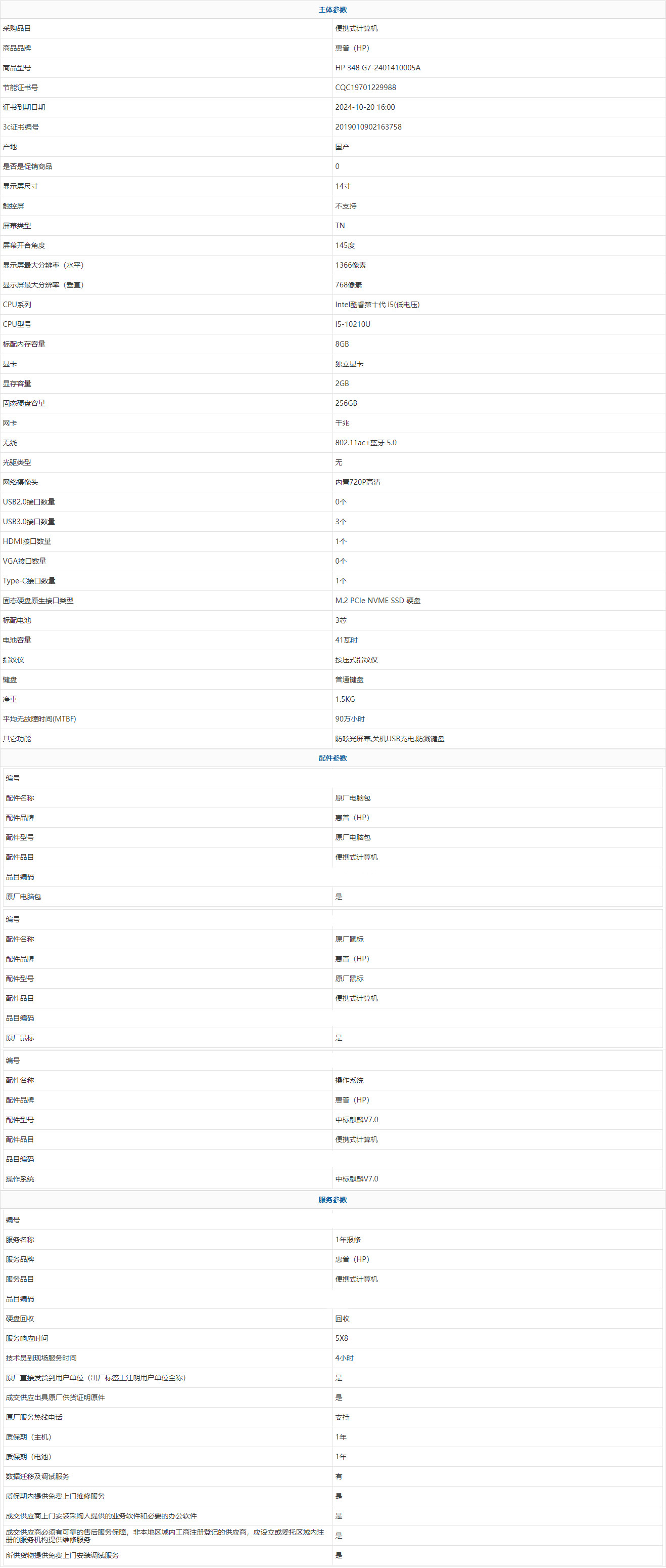 • 商品名稱(chēng):惠普(HP) HP 348 G7-2401410005A Intel酷睿第十代 i5(低電壓) I5-10210U 8GB 256GB 中標(biāo)麒麟V7.0 14寸 1年