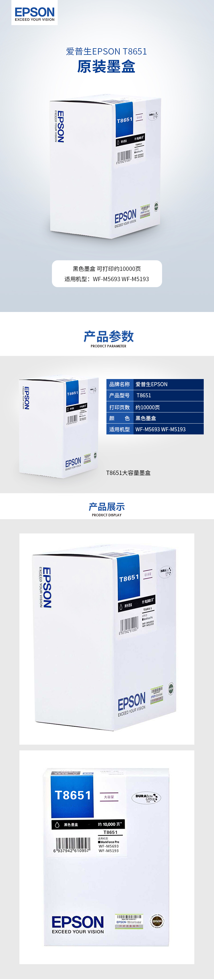 • 商品名稱:愛普生(EPSON)T8651原裝墨盒 (適用M5193/M5693機型)