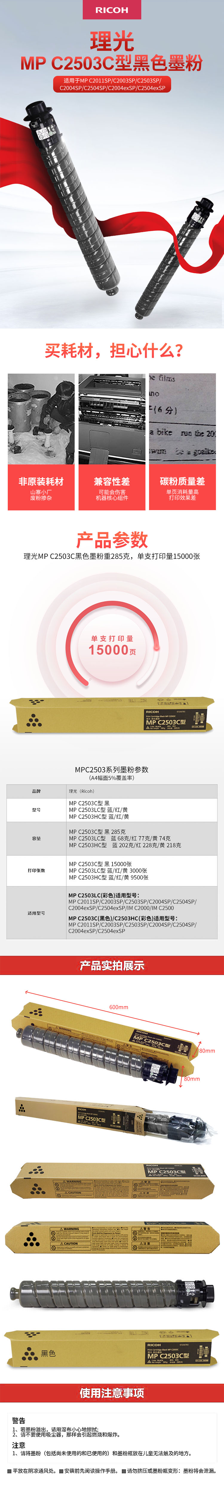 • 商品名稱:理光(RICOH)黑色墨粉盒 MP C2503C型 (15,000頁)