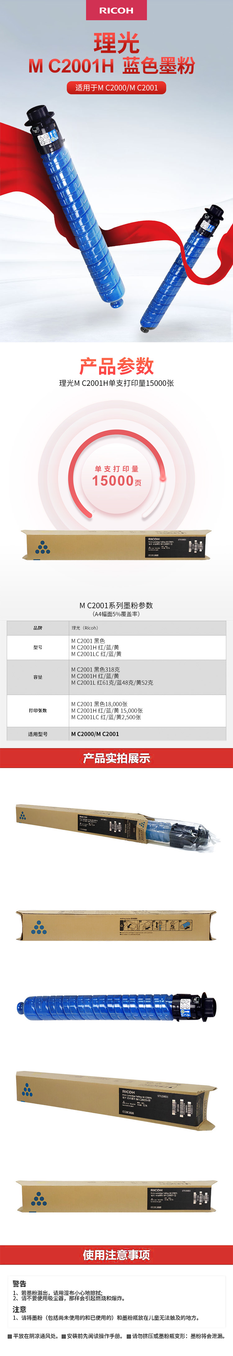 • 商品名稱:理光(RICOH)M C2001H型藍(lán)色墨粉盒 印量約15000頁