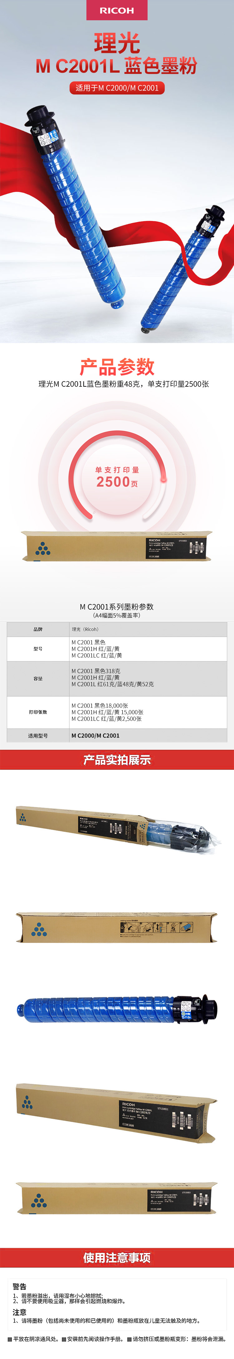 • 商品名稱:理光(RICOH)藍(lán)色墨粉盒 M C2001LC型(2,500頁)