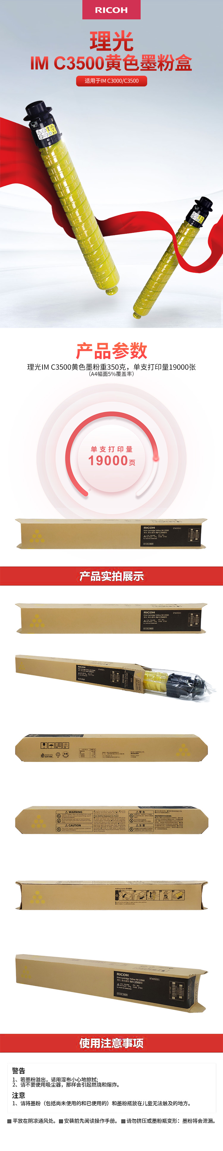 • 商品名稱(chēng):理光(RICOH)黃色墨粉盒 IM C3500型 (19,000頁(yè))