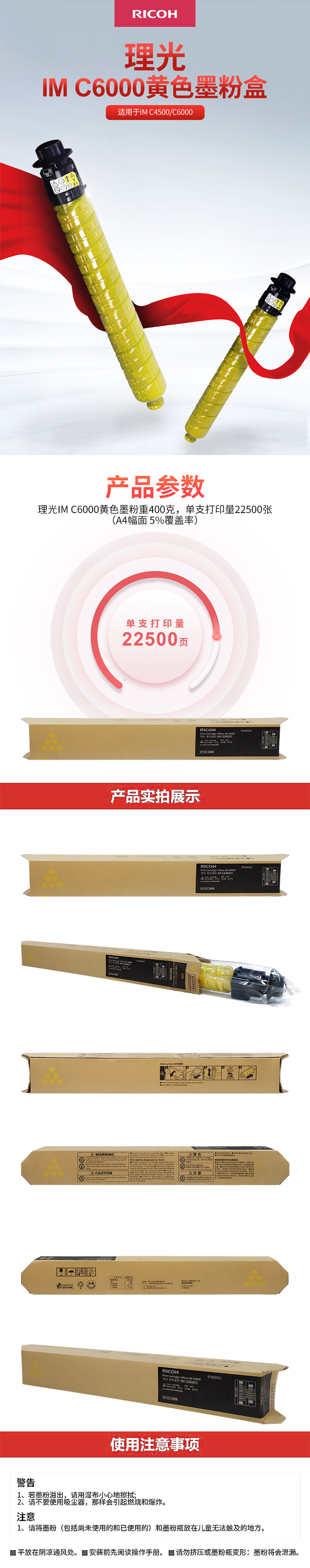 • 商品名稱:理光(RICOH)黃色墨粉盒 IM C6000型 (22,500頁)