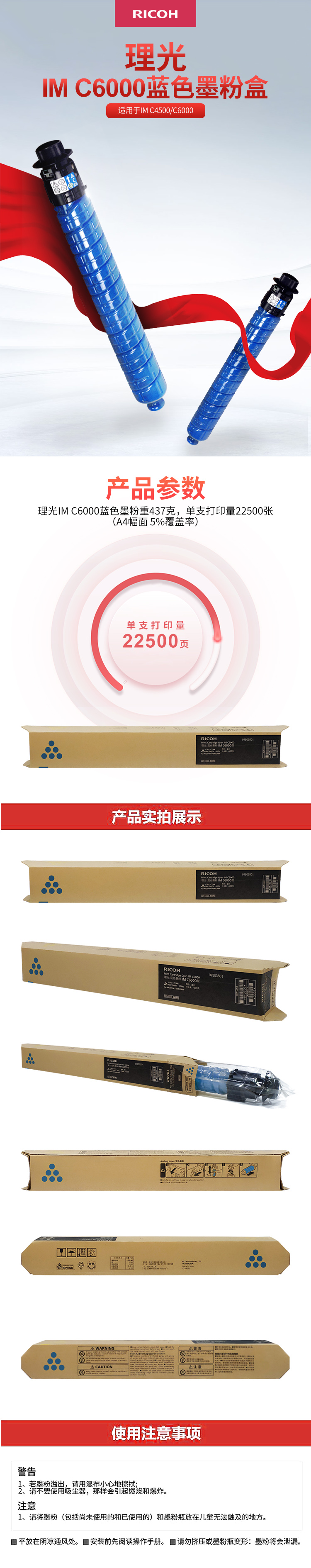 • 商品名稱:理光(RICOH)藍(lán)色墨粉盒 IM C6000型 (22,500頁(yè))