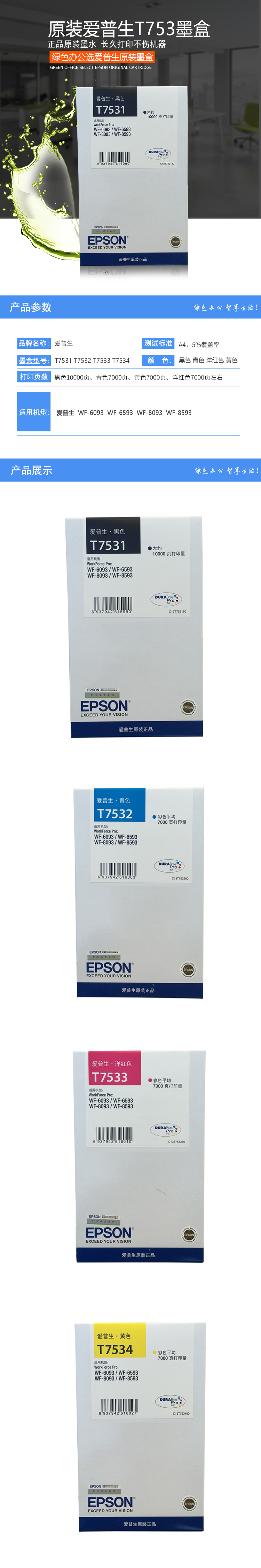 - 商品名稱:愛(ài)普生(EPSON)T7531黑色墨盒(適用WF-6093/6593/8093/8593機(jī)型)