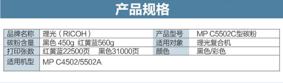 • 商品名稱:理光(RICOH)MPC5502C型紅色碳粉盒 印量約22500頁