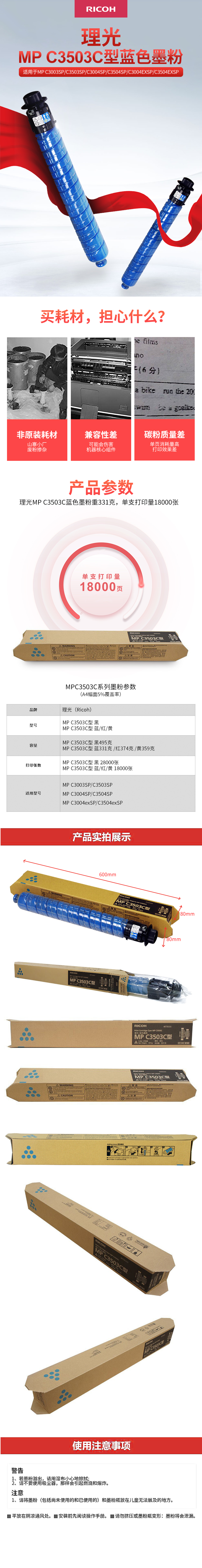 • 商品名稱(chēng):理光(RICOH)藍(lán)色碳粉盒MPC3503C型(18,000頁(yè))
