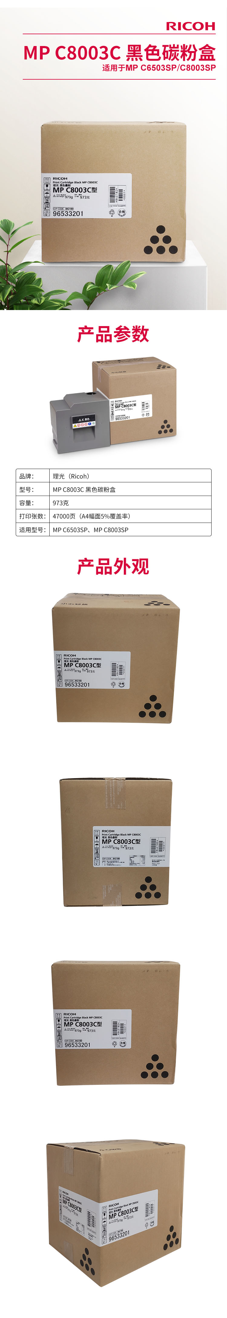 • 商品名稱:理光(RICOH)黑色碳粉盒MPC8002C型 (48,500頁)