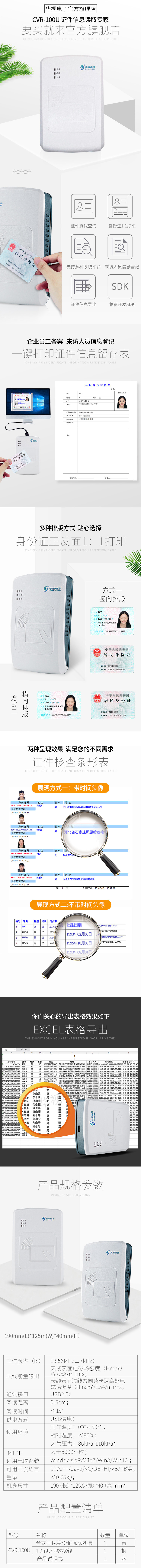 • 型號(hào):華視電子CVR-100U二代身份證閱讀器 CVR100U居民身份證閱讀機(jī)具讀卡器