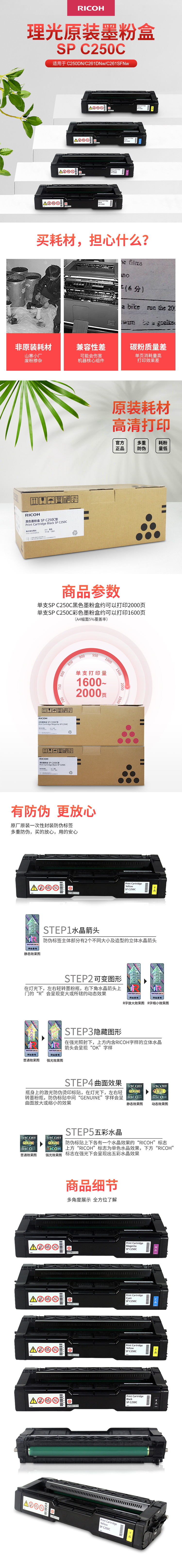 • 商品名稱:理光(RICOH)紅色墨粉盒SP C250C型(1,600頁)