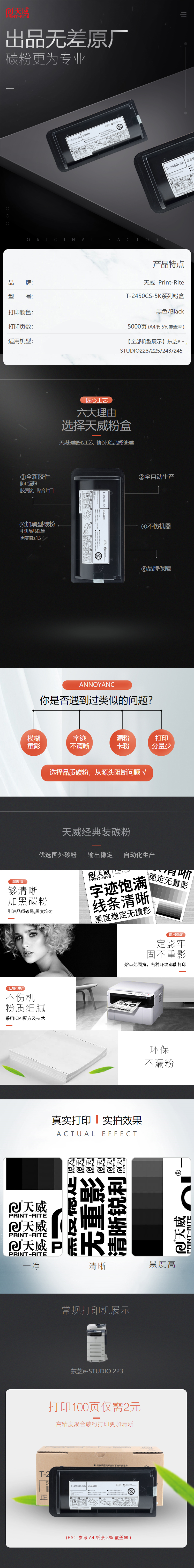 天威 T-2450CS-5K 復(fù)印機(jī)粉盒帶芯片經(jīng)典裝 5000頁 黑色 適用于東芝e -STUDIO223/225/243/245