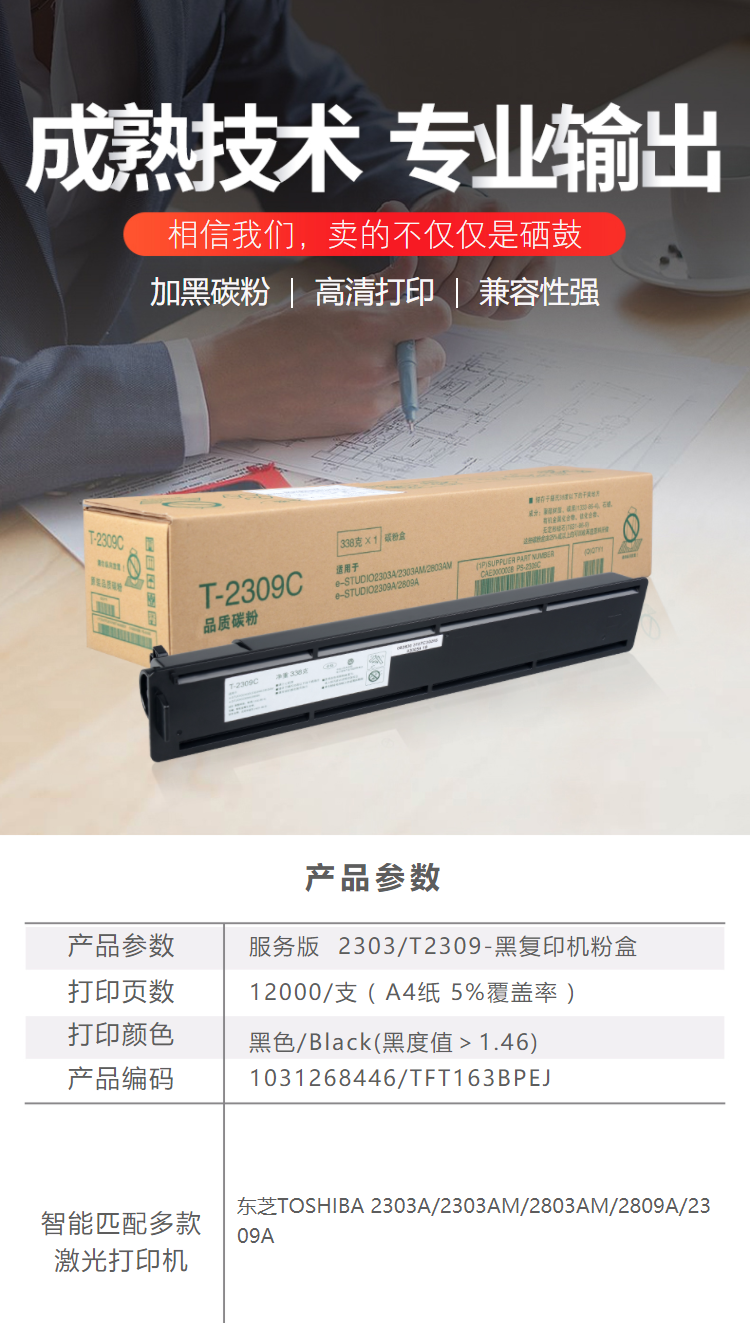 • 商品名稱:天威 T-2309C-S 復(fù)印機(jī)粉盒帶芯片經(jīng)典裝 4200頁 黑色 適用于TOSHIBA 2303A/2303AM/2803AM/2809A/2309A
