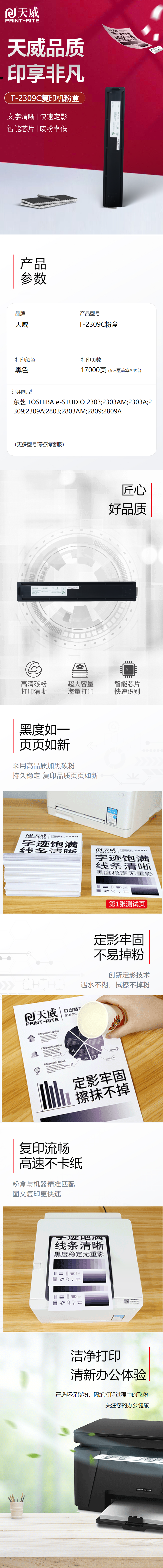 天威 T-2309C 復(fù)印機粉盒帶芯片經(jīng)典裝 12000頁 黑色 適用于TOSHIBA 2303A/2303AM/2803AM/2809A/2309A