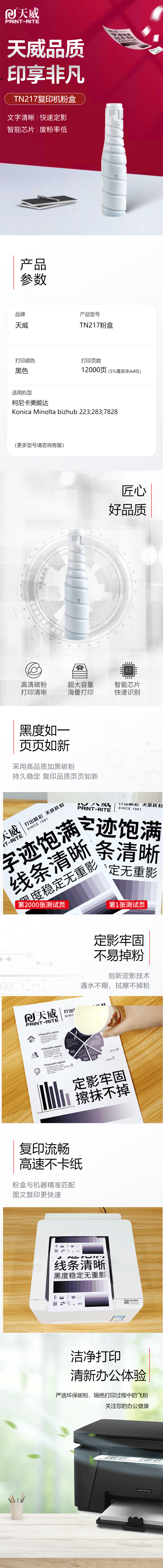 天威 TN217 復(fù)印機(jī)粉盒經(jīng)典裝 12000頁 黑色 適用于柯尼卡美能達(dá)bizhub223/283/7828