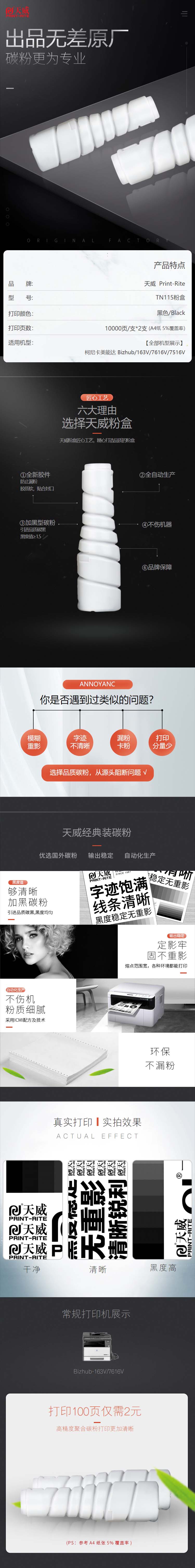 天威 TN115 復(fù)印機(jī)粉盒雙支裝經(jīng)典裝 10000頁*2支 黑色 適用于柯尼卡美能達(dá)/Bizhub/163V/7616V