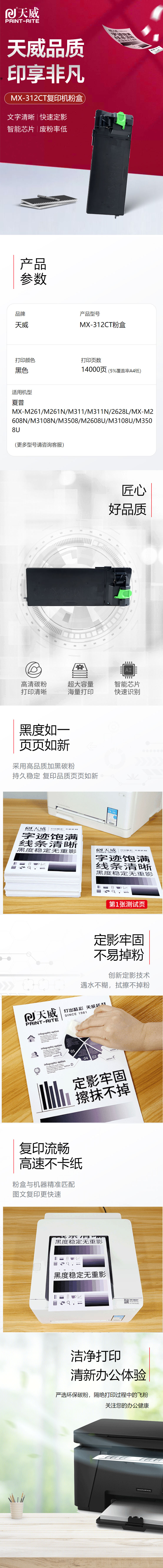 天威 MX-312CT 復(fù)印機(jī)粉盒帶芯片經(jīng)典裝 14000頁 黑色 適用于14