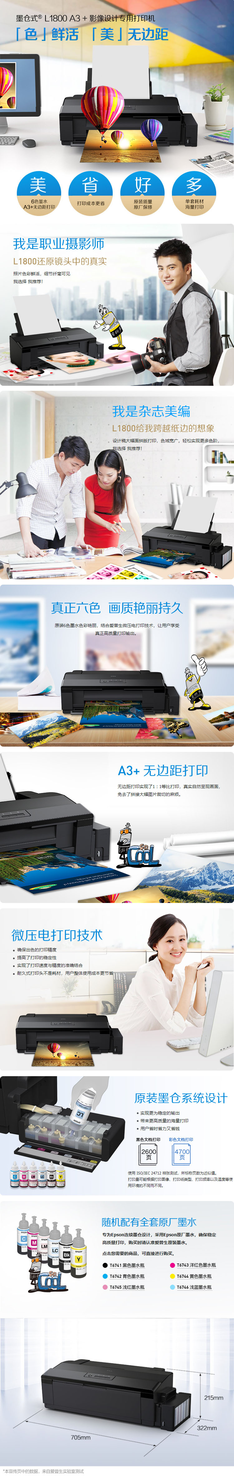 愛普生(EPSON)L1800噴墨打印機(jī) 墨倉式 A3+影像設(shè)計專用照片打印機(jī)