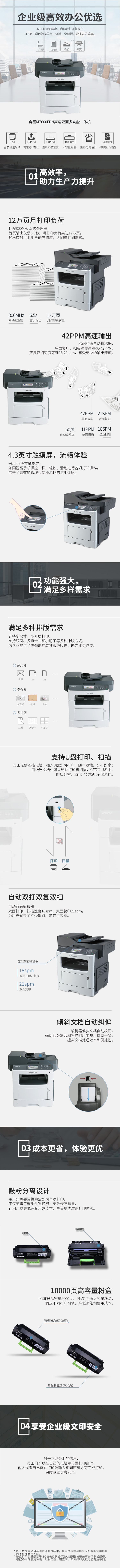 • 商品名稱:奔圖(PANTUM)M7600FDN A4黑白多功能一體機(jī) 自動雙面打印 有線打印