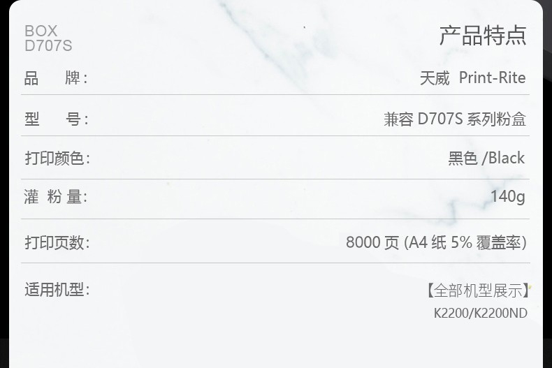 天威 D707S 復(fù)印機(jī)粉盒帶芯片經(jīng)典裝 8000頁 黑色 適用于 K2200/K2200ND