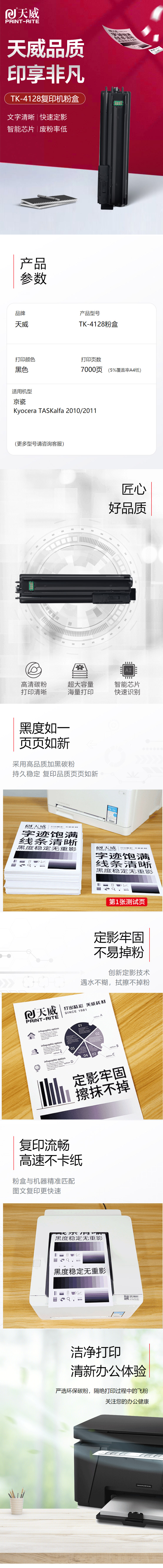 天威 TK-4128 復(fù)印機(jī)粉盒帶芯片經(jīng)典裝 7000頁 黑色 適用于Kyocera/京瓷 TASKalfa 2010 2011