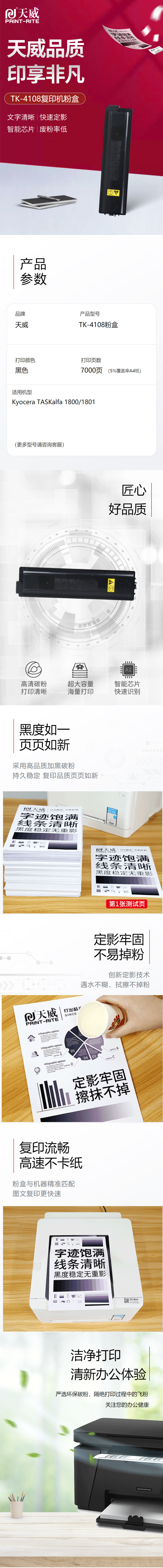 天威 TK-4108 復(fù)印機(jī)粉盒帶芯片經(jīng)典裝 7000頁(yè) 黑色 適用于Kyocera/京瓷 TASKalfa 1800 1801