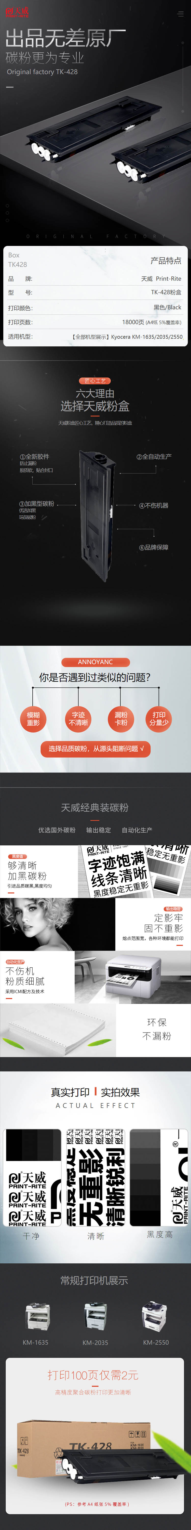 天威 TK-428 復(fù)印機粉盒經(jīng)典裝 23000頁 黑色 適用于Kyocera/京瓷?KM 1635 2035 2550