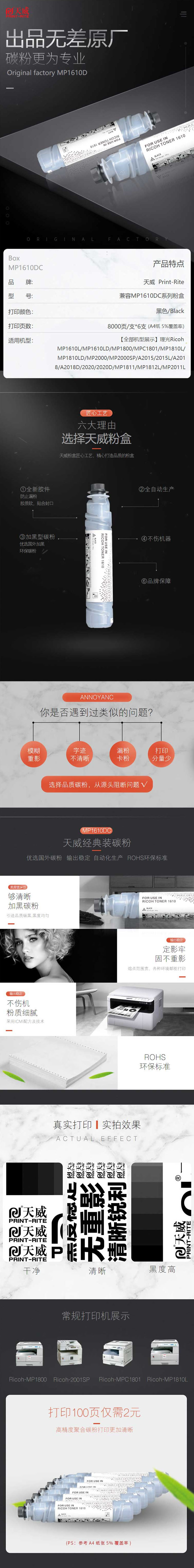 天威 MP1610D 復(fù)印機粉盒六支裝經(jīng)典裝 8000頁*6支裝 黑色 適用于理光Ricoh MP1610L/MP1610LD/MP1800/MPC1801/MP1810L/MP1810LD