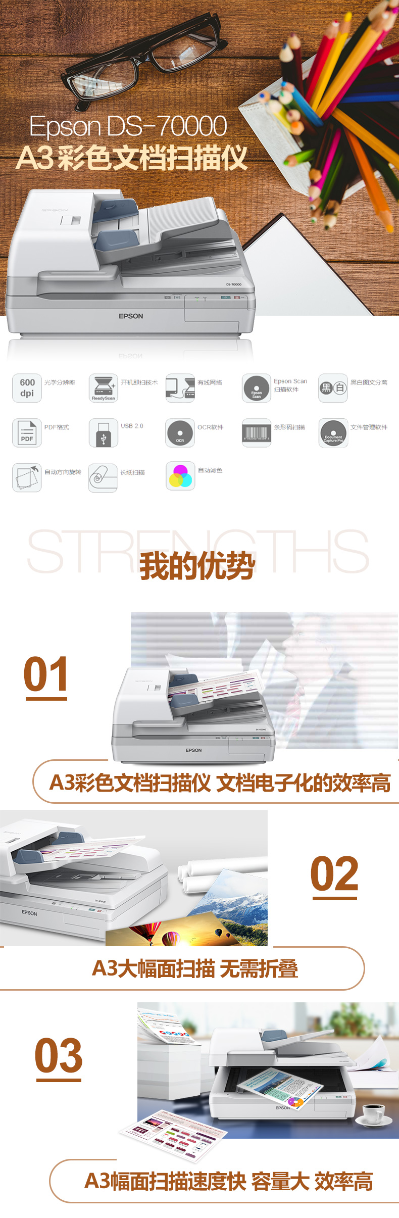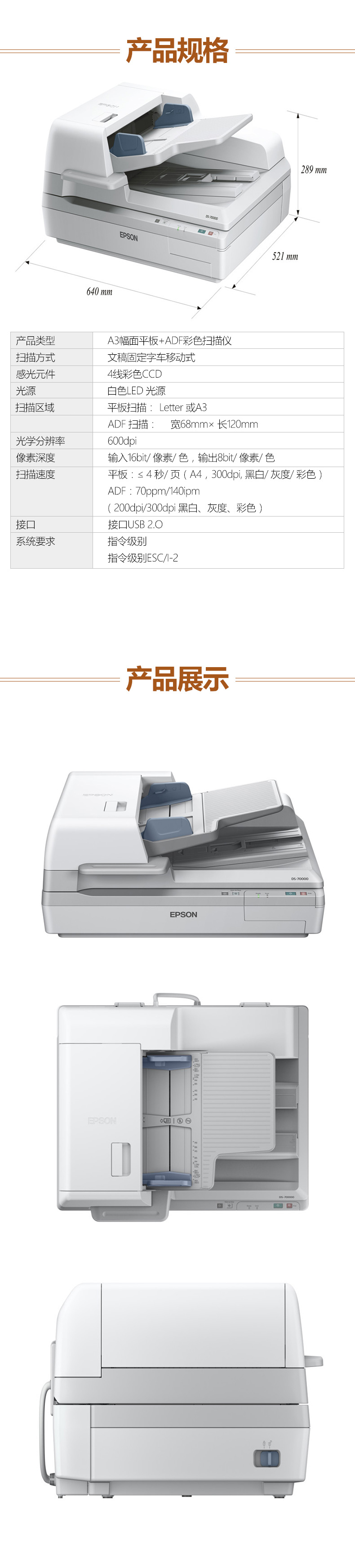 - 商品名稱(chēng):愛(ài)普生 DS-70000 A3 高速彩色文檔掃描儀