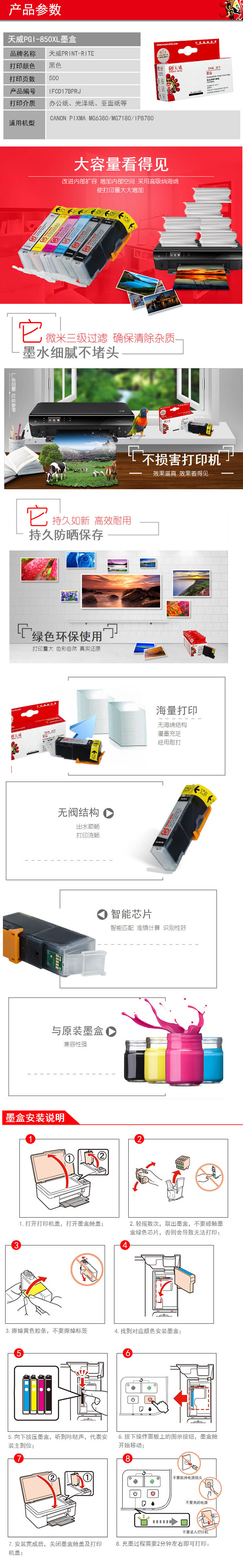 天威 PGI-850 BK 墨盒專業(yè)裝 500頁 黑色 適用于CANONPIXMAMX928/MX728/MG5480/MG5580/MG6380/MG6400/MG7180/IP7280/IP8780