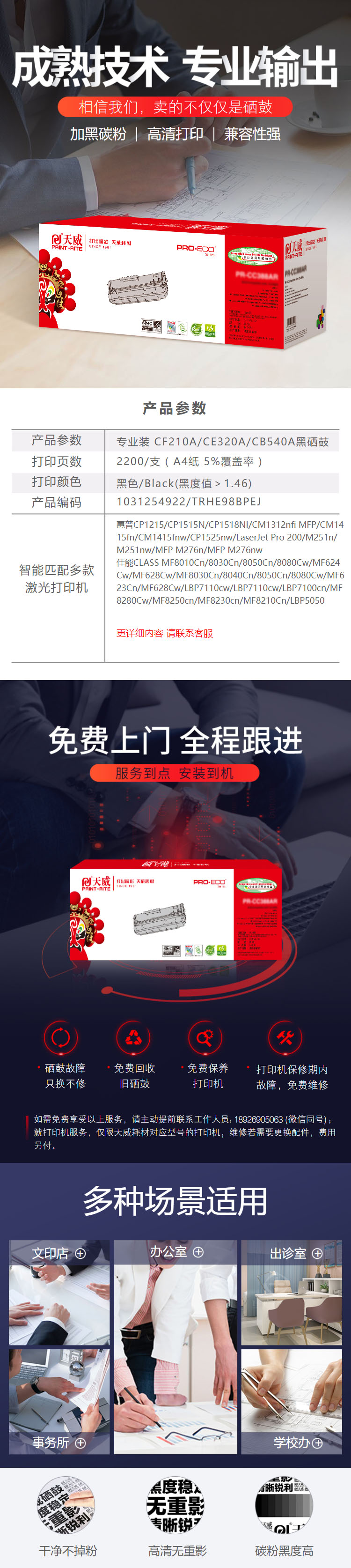 天威 CB540A 硒鼓帶芯片商用裝(TRH825BPSYJ) 2200頁 黑色 / 適用于HP Color LaserJet CP1210/CP1215/CP1510/CP1515/CP1518/CM1312MFP Canon Laser Shot LBP5050/5050n, Canon MF8040/MF8050