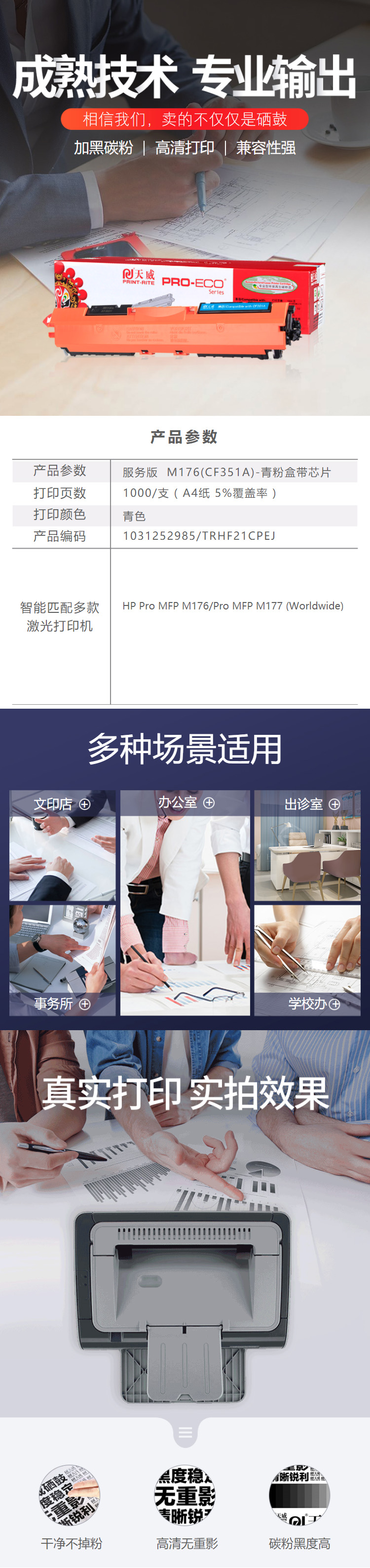 天威 CF351A 粉盒帶芯片專業(yè)裝(TRHF21CPEJ) 1000頁 青色 / 適用于HP Pro MFP M176/Pro MFP M177 (Worldwide)