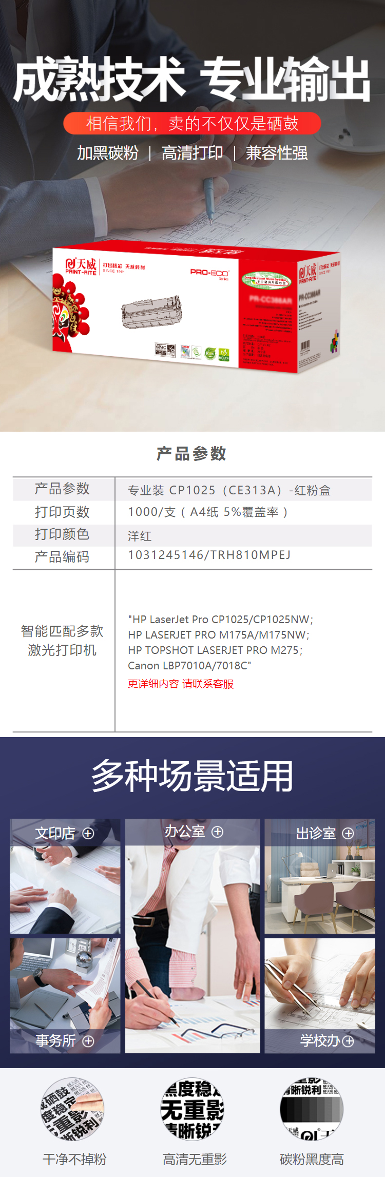 天威 CE313A 粉盒帶芯片專業(yè)裝(TRH810MPEJ) 1000頁 洋紅色 / 適用于HP LaserJet Pro CP1025/CP1025NW; HP LASERJET PRO M175A/M175NW; HP TOPSHOT LASERJET PRO M275; Canon LBP7010A/7018C