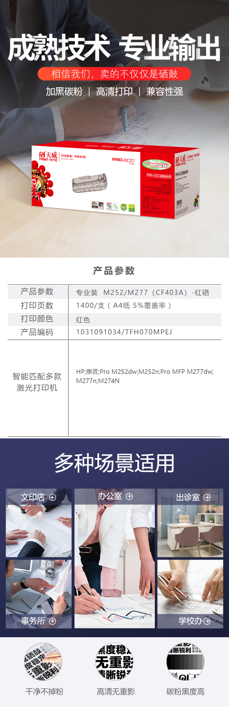 天威 CF403A 硒鼓帶芯片專業(yè)裝(TFH070MPEJ) 1400頁 洋紅色 / 適用于HP Color LaserJet Pro M252dw/M252n HP Color LaserJet Pro MFP M277dw/M277n/M274N
