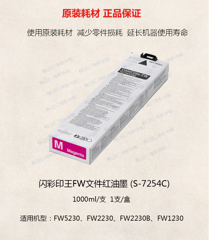 • 商品名稱:理想 (RISO) S-7254C 閃彩印王FW文件紅油墨 適用于FW5230/2230/2230B/1230機型