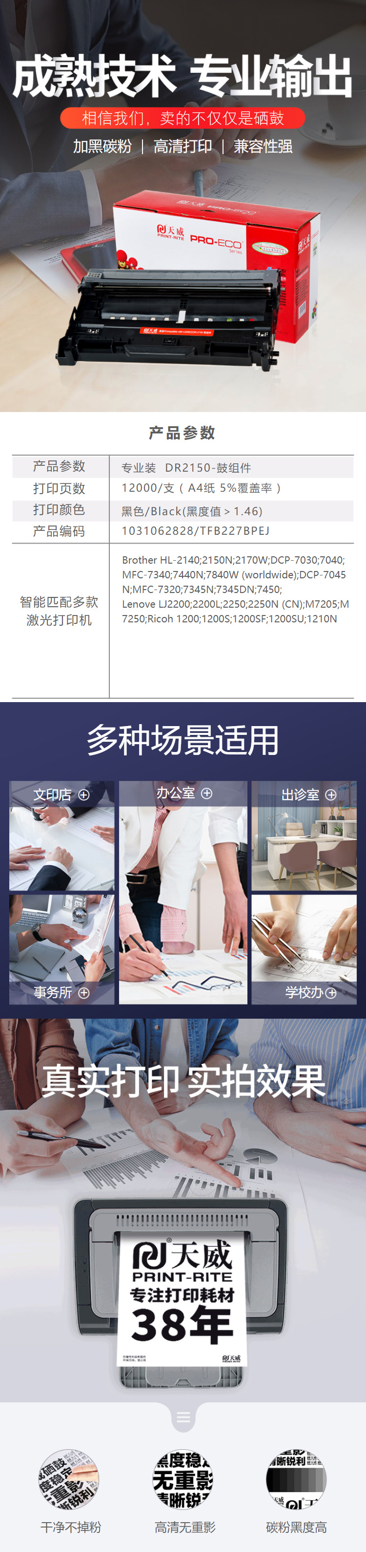 天威 LD2822/DR2150 鼓組件專業(yè)裝(TFB227BPEJ) 12000頁(yè) 黑色 / 適用于Brother HL-2140/2150N/2170W, DCP-7030/7040, MFC-7340/7440N/7840W (worldwide); Lenove LJ2200/2200L/2250/2250N (CN) Lenovo M7205/M7250 Ricoh Aficio SP