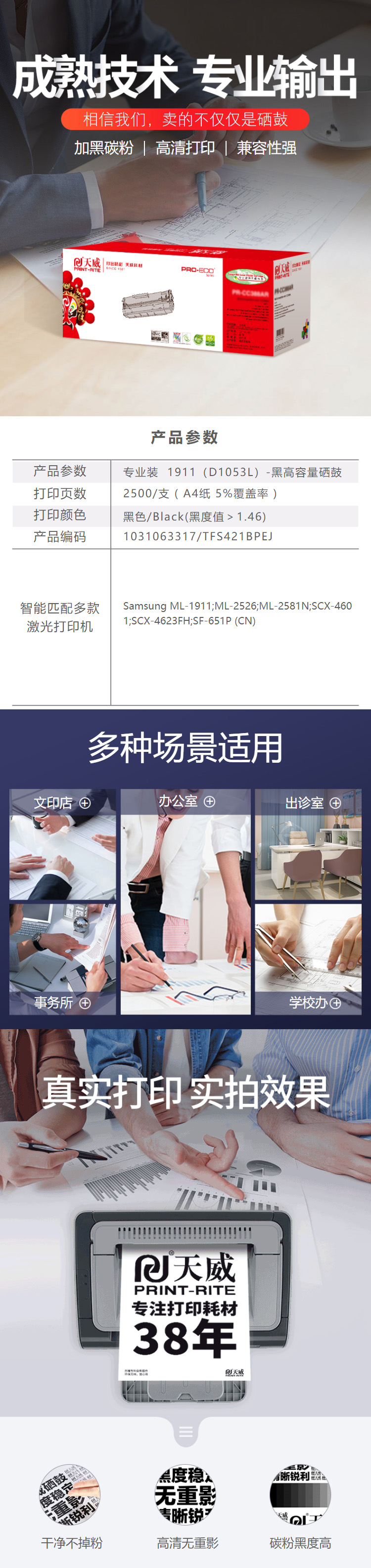 天威 ML-1911 硒鼓黑高容量硒鼓帶芯片專業(yè)裝(TFS421BPEJ) 2500頁(yè) 黑色 / 適用于Samsung ML-1911/ML-2526/ML-2581N/SCX-4601/SCX-4623FH/SF-651P (CN)
