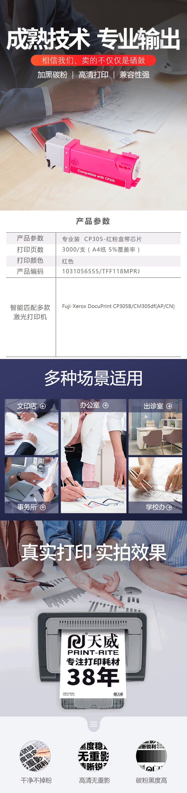 天威 CP305 粉盒帶芯片專業(yè)裝(TFF118MPRJ) 3000頁(yè) 洋紅色 / 適用于Fuji-Xerox DocuPrint CP305B/CM305df(AP/CN)