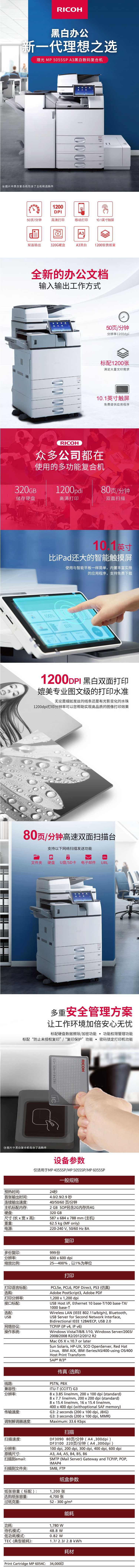 - 商品名稱:理光(Ricoh)MP 5055SP A3黑白數(shù)碼復(fù)合機(jī)(主機(jī)+送稿器+標(biāo)配雙紙盒+內(nèi)置裝訂器)
