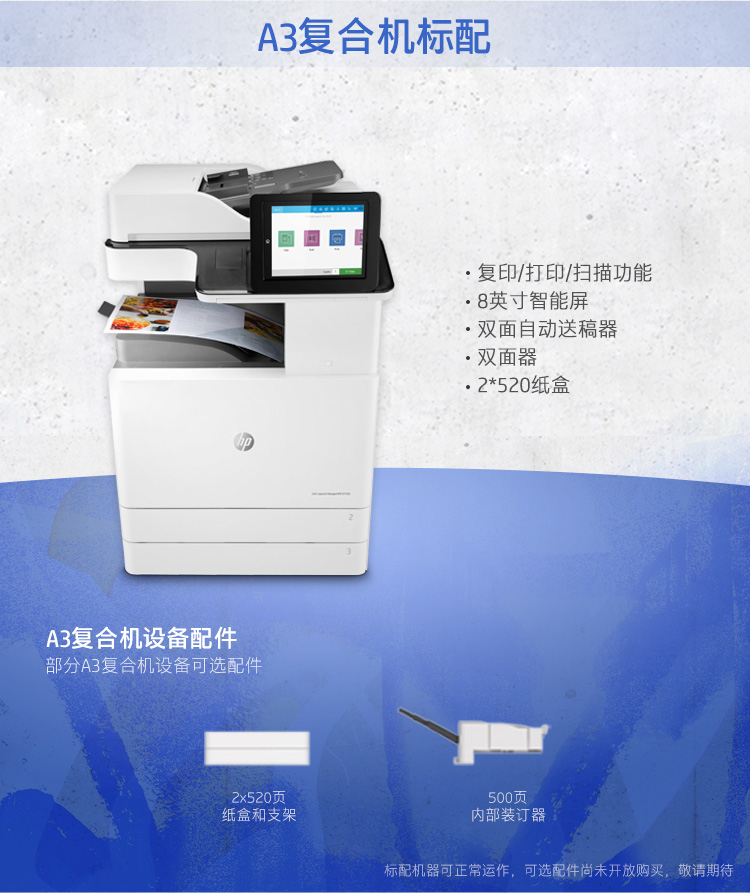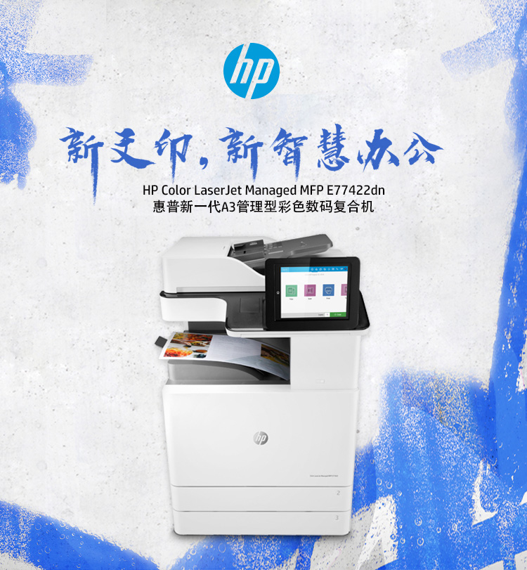 惠普(HP)Color LaserJet Managed MFP E77422dn A3彩色數(shù)碼復(fù)合機(jī)(復(fù)印/打印/掃描)有線網(wǎng)絡(luò) 自動雙面 黑彩同速22頁/分鐘 1200×1200dpi 適用耗材:四色硒鼓W9100MC/W9101MC/W9102MC/W9103MC(主機(jī)+雙紙盒+雙面輸稿器)