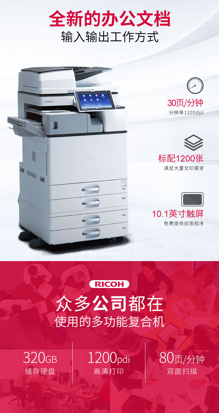 • 商品名稱:理光(Ricoh)MP 3055SP A3黑白數(shù)碼復(fù)合機 含蓋板+雙紙盒