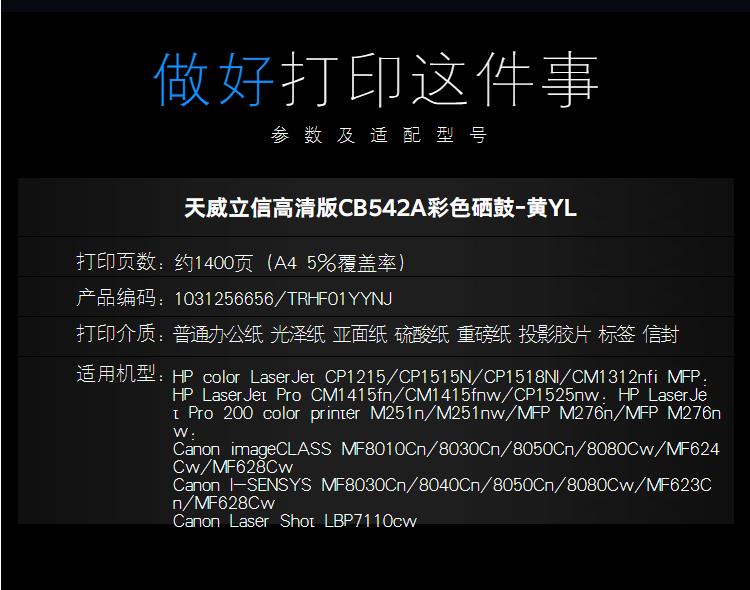 立信 CB542A 硒鼓帶芯片天威立信(TRHF01YYNJ) 1400頁(yè) 黃色 / 適用于HP color LaserJet CP1215/CP1515N/CP1518NI/CM1312nfi MFP; HP LaserJet Pro CM1415fn/CM1415fnw/CP1525nw; HP LaserJet Pro 200 color printer M251n/M251nw/MFP