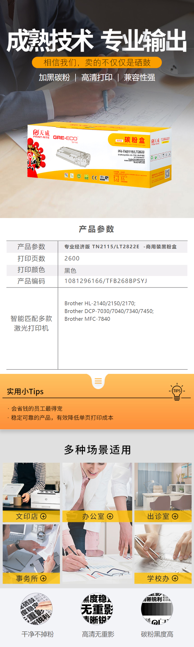 - 商品名稱(chēng):天威 LT2822 粉盒商用裝(TFB268BPSYJ) 1500頁(yè) 黑色 / 適用于Brother HL-2140/2150/2170; Brother DCP-7030/7040/7340/7450; Brother MFC-7840
