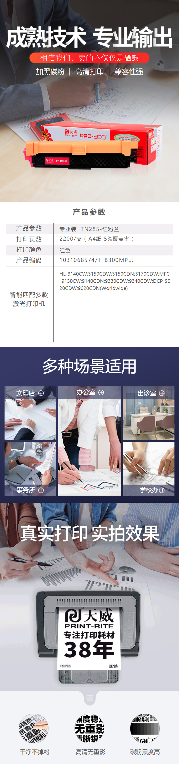 天威 TN285 硒鼓專業(yè)裝(TFB300MPEJ) 2200頁 洋紅色 / 適用于Brother HL-3140CW/3150CDW/3150CDN/3170CDW, MFC-9130CW/9140CDN/ 9330CDW/9340CDW, DCP-9020CDW/9020CDN (Worldwide)