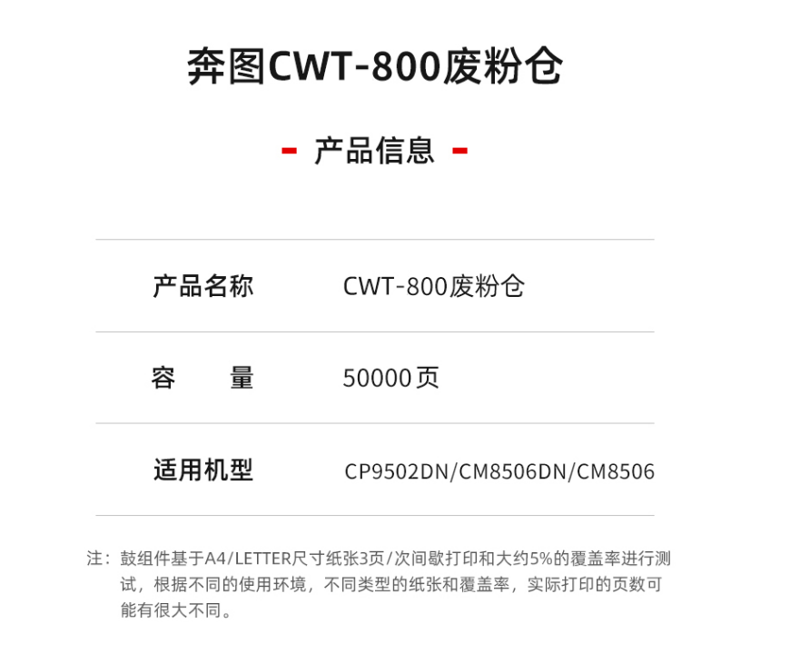 • 商品名稱:奔圖(PANTUM)CWT-800 廢粉倉 適用于(CP9502DN/CM8506DN/CM8506)