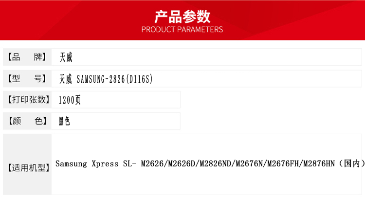 天威 D116S 粉盒帶芯片-新版專業(yè)裝(TFSF4ZBPEJ) 1200頁 黑色 / 適用于Samsung Xpress SL- M2626/M2626D/M2826ND/M2676N/M2676FH/M2876HN