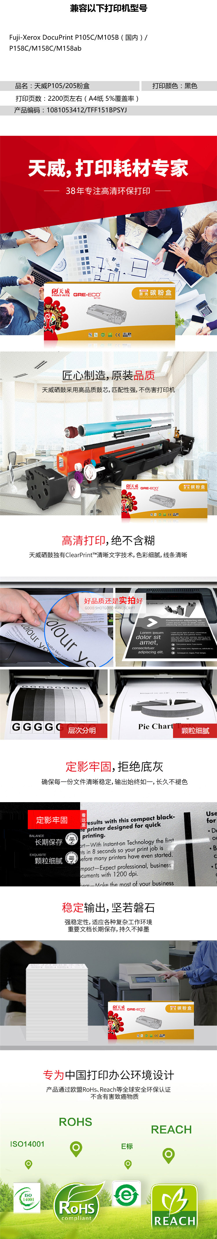 天威 P105/205 高容量粉盒帶芯片商用裝(TFF151BPSYJ) 2200頁 黑色 適用于Fuji-Xerox DocuPrint P105C/M105B(國內(nèi))/P158C/M158C/M158ab